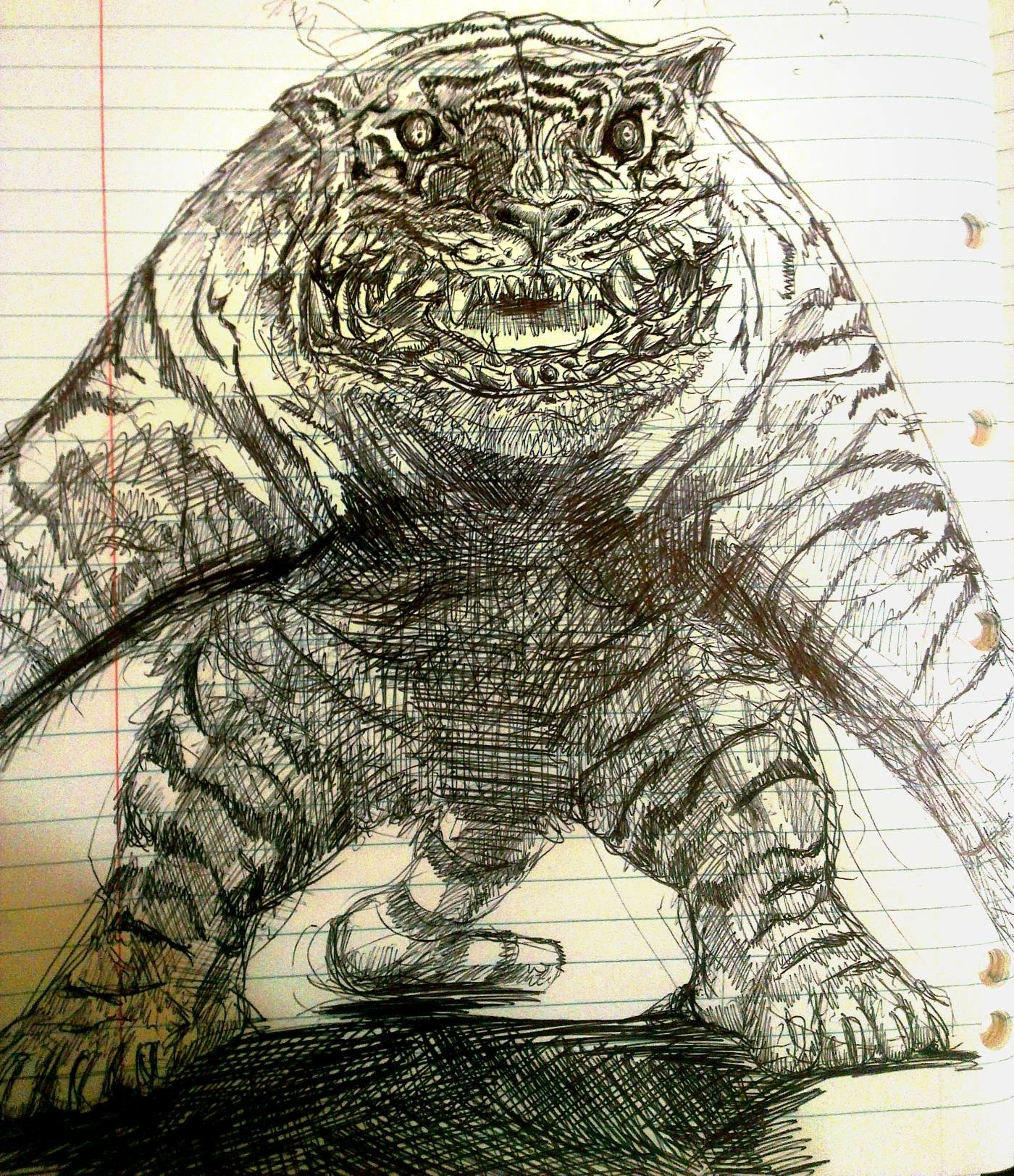 tiger (?) June 27, 2013 In the style of tiger(?)s from the manga Berserk. Another high school doodle. All images © Michael Ledger, all rights reserved.