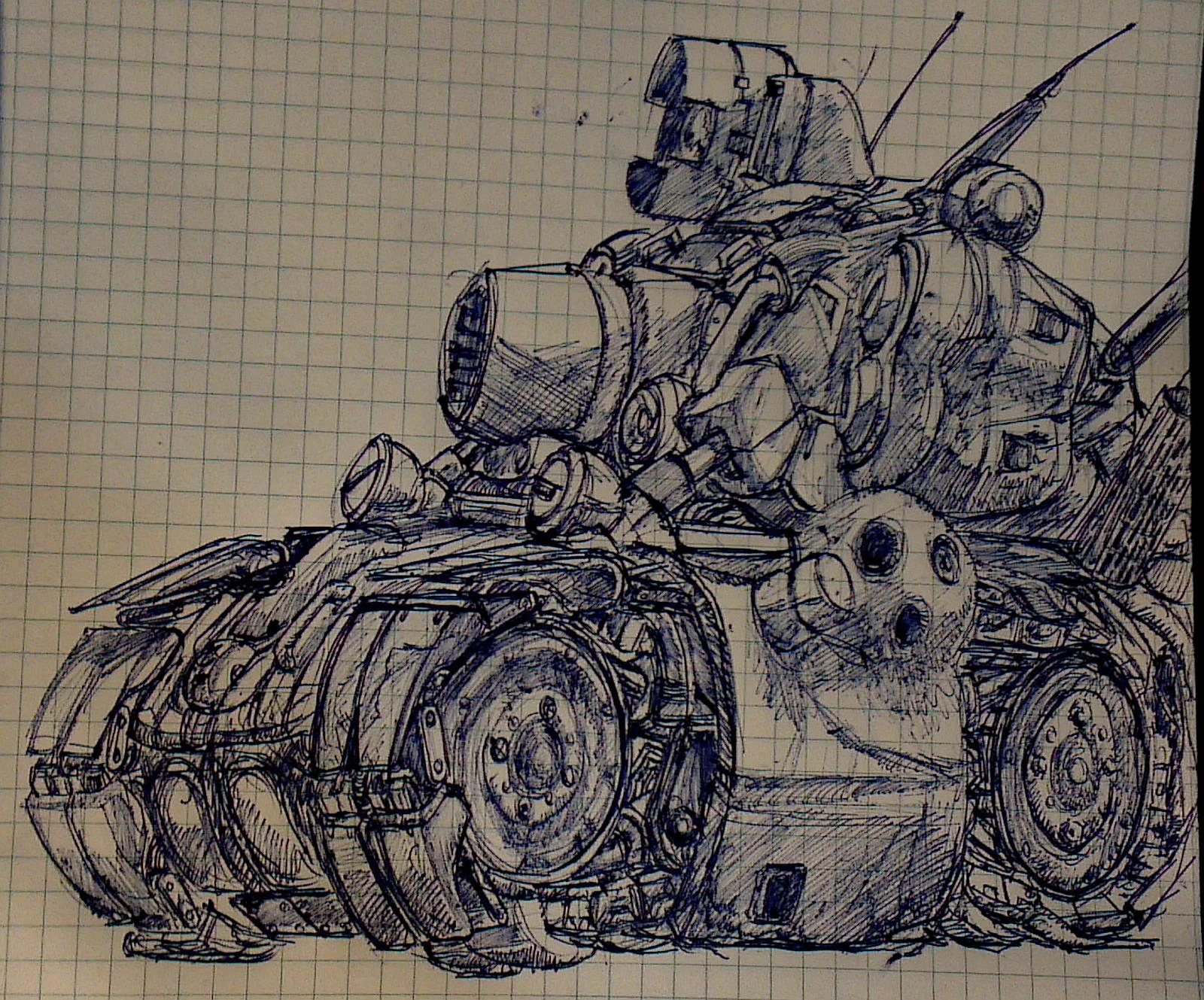Metal Slug July 23, 2013 The tank "Metal Slug" from the game "Metal Slug". As with other grid/line paper drawings this was done at the end of high school. All images © Michael Ledger, all rights reserved.